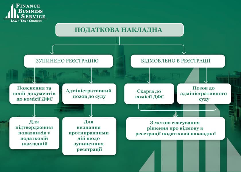 Підсумовуючи, можна зазначити, що в разі зупинення реєстрації податкової накладної оскаржуються дії Державної фіскальної служби України в судовому порядку, а в разі відмови в реєстрації податкової накладної оскаржуються рішення Державної фіскальної служби України в адміністративному або судовому порядку.