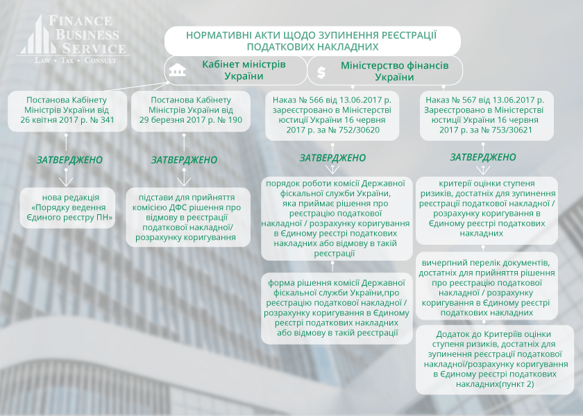 - загальний порядок зупинення реєстрації та реєстрація податкової накладної;